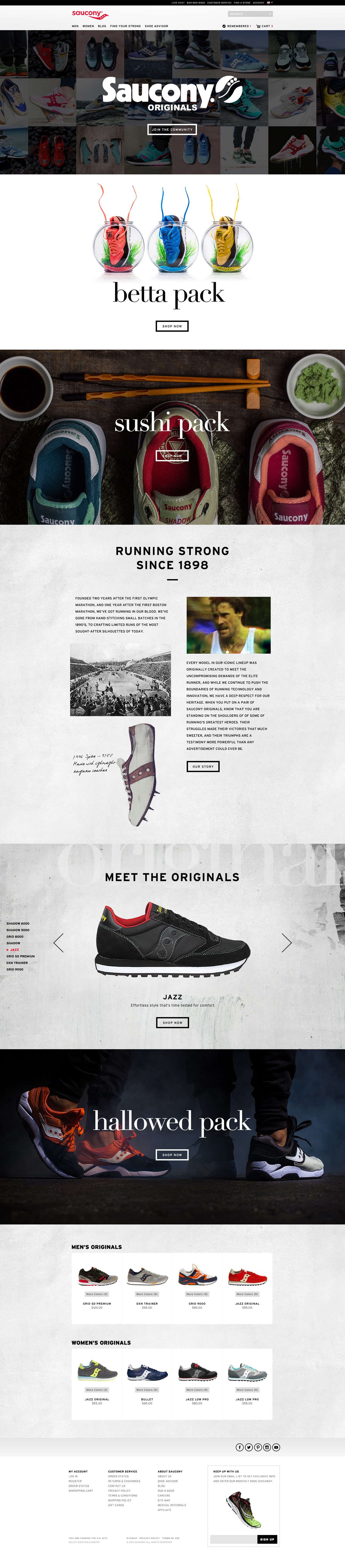 In collaboration with Some Odd Pilot studio, I lead design direction for Saucony Originals brand history video. Having only limited resources, I composited various assets of archived catalogs, print ads and old VHS footage to create a hybrid retro-modern aesthetic. Additionally I contributed design direction for the home page.